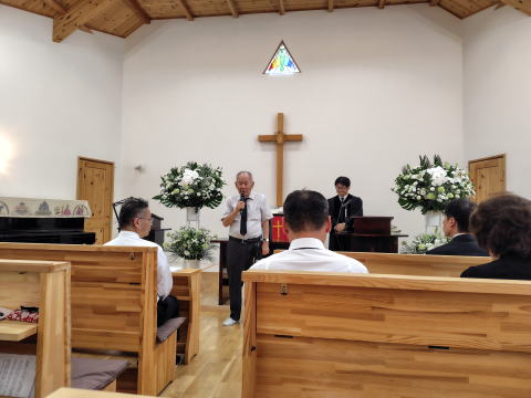 掛江牧師が司会進行しました。滝沢徳雄先生の説教