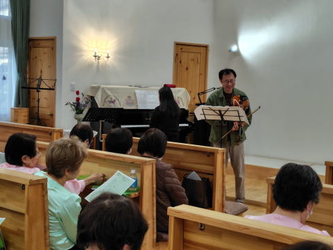 11月23日(日)礼拝後14:30よりチャペルコンサートが行われました。演奏者はハンドベルのレブリーベル、ピアノ演奏の掛江とも子姉、クラシックギターの遠藤清賢、コーラスのコーラス草の皆さん、最後は花巻教会の鈴木道也牧師と奥様の摩耶子さんでした。特にコーラス草の皆さんから、このように発表する場があることはとても励みになり、感謝ですという言葉を頂きました。皆さん75歳以上の方々で来年、この場に立てるかどうか分からないというのですが、このような機会に恵まれていることは生きることの大きな励ましになるというのです。このコンサートを開催することができることをこころから感謝しました。